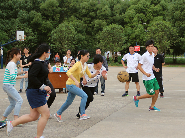 比赛分为运球接力大赛、男女混合球赛、投篮大赛与篮球挑战赛,其中前三项为趣味性项目,最后一项是教工和四个专业的男生的篮球比赛。在师生对抗赛环节,双方比分一直处于胶着状态,结束前最后一分钟双方只相差3分。最终,教工队绝杀完成反超,以1分之差险胜学生联队。