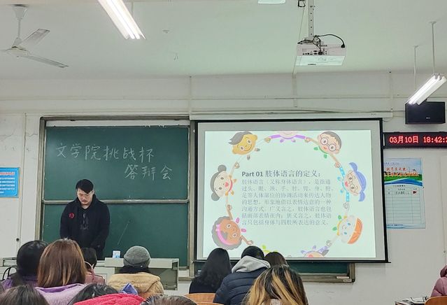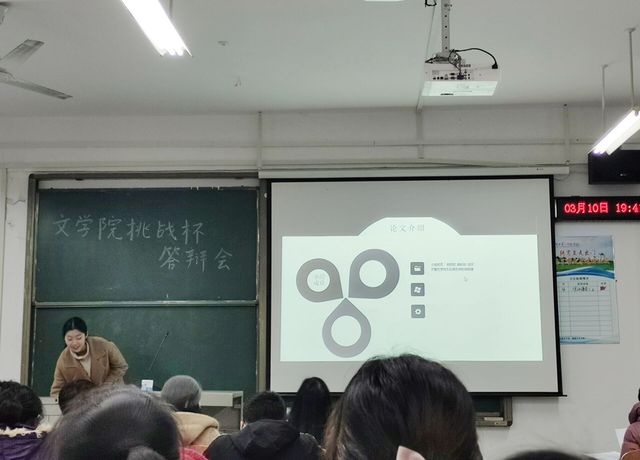 答辩会主要由选手答辩、老师点评两个环节组成。同学们按照分组顺序依次上台进行答辩。同学们通过查阅资料、制作调查问卷、实地考察等方式完成选题的论文或调查报告的写作,将成果以PPT的形式展示在同学们和老师面前,接受指导与建议。