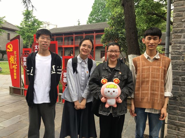 参观过程中,偶遇到青年大学生正在现场拍摄,几个同学激动地合影留念。