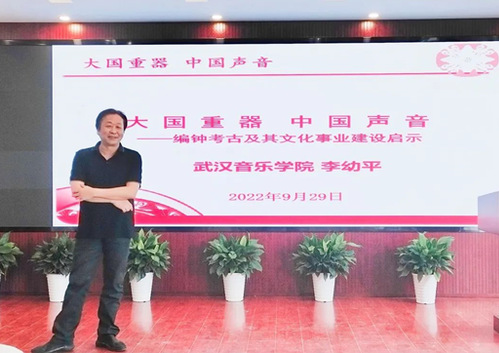 9月29日下午,文学院邀请到了武汉音乐学院党委常委、副校长,中国音乐考古研究中心主任李幼平教授为我院学生开展讲座。此次讲座在文学院1301教室举行。文学院部分教师出席本次讲座,20级汉语言文学1班、3班全体同学参加。此次讲座由文学院教授彭公亮主持。