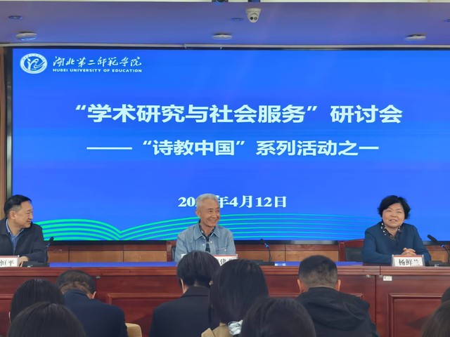 本网讯(通讯员 卢奕慧 汪明珠)4月12日下午,“诗教中国”系列活动——湖北第二师范学院“学术研究与社会服务”研讨会在行政楼五号会议室顺利举行。本次活动特邀“感动中国2022年度人物”、华中师范大学教授、广东外语外贸大学特聘教授戴建业作专题报告,校党委书记杨鲜兰、副校长田恒平及有关部门负责人、文学院师生及其他相关学者参加会议,会议由国家语言文字推广基地(湖北第二师范学院)执行主任、文学院院长龙珍华主持。
