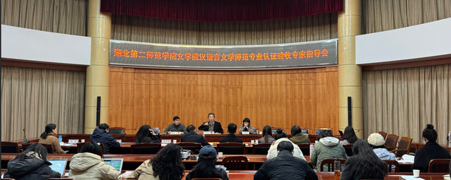 本网讯(通讯员杨萌)11月17日,湖北第二师范学院行政楼会议室隆重召开了汉语言文学专业师范认证专家指导会。教育部师范类专业认证专家委员会委员、学术委员会主任、师范专业认证标准制定专家组成员宋冬生教授,北京师范大学文学院马东瑶教授,黄冈师范学院文学院院长陈志平教授莅临指导,学校党委常委、副校长田恒平教授,教务处刘永存处长,质评处唐荣华主任,文学院领导班子及全体教师参加了此次座谈指导会。