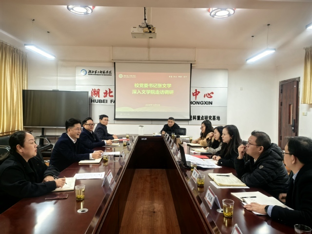 12月3日,校党委书记张文学、副校长田恒平、学校党政办公室主任王青及科室主管柯常春一行,莅临文学院开展工作调研与座谈。文学院党总支书记库文静、院长龙珍华、副书记胡鹏、副院长李汉桥、副院长马英和各教研室主任及学院党政办、教学科研办主管全程参会,共同为文学院发展建言献策。